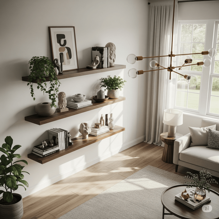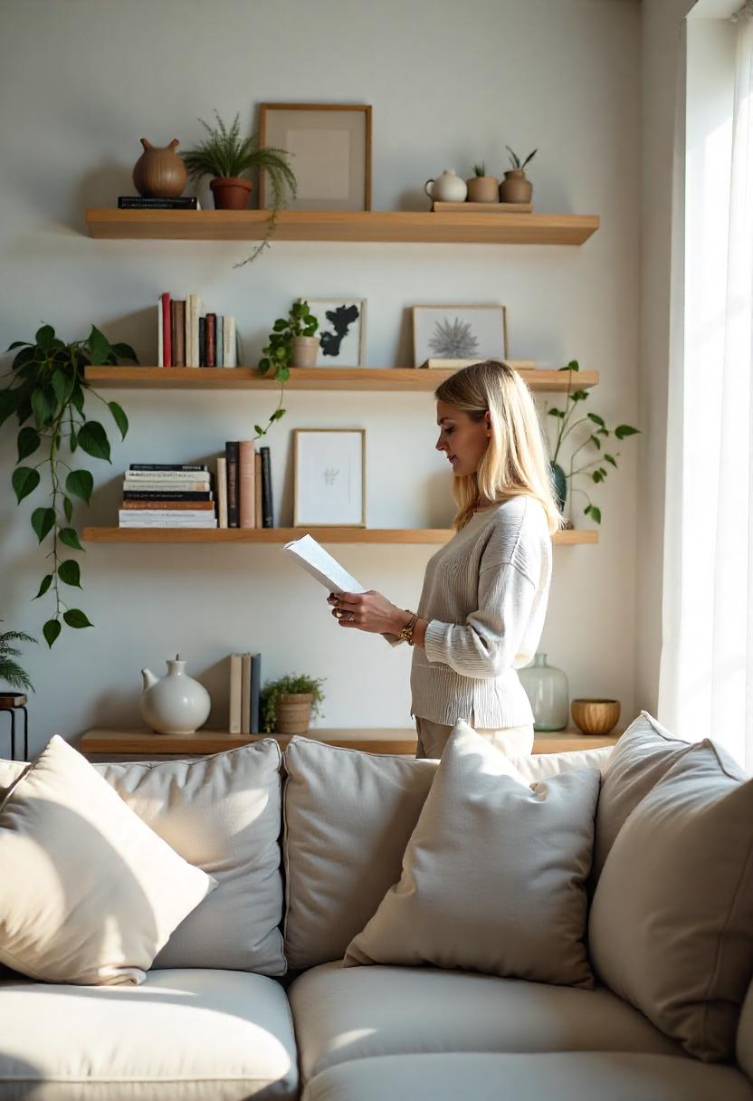 Before you start styling, clear everything off your shelves. Take a moment to consider your wall color, nearby furniture, and the overall vibe of the room. What feeling are you trying to create? Calm and cozy? Modern and minimalist? Keep that mood in mind as your guiding principle.