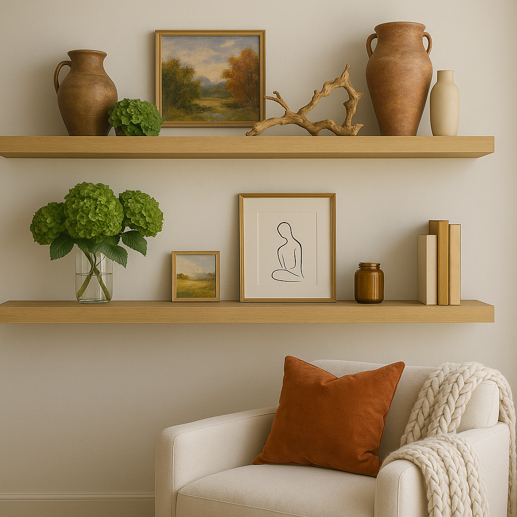 There’s something undeniably satisfying about a well-styled floating shelf. It looks clean, effortless, and elevated — like it came straight out of a magazine. But behind that effortless look is a thoughtful approach to balance, color, and texture. Whether you’re styling shelves in your living room, kitchen, or entryway, the goal is the same: to create a cohesive story without making it feel cluttered or overly staged.