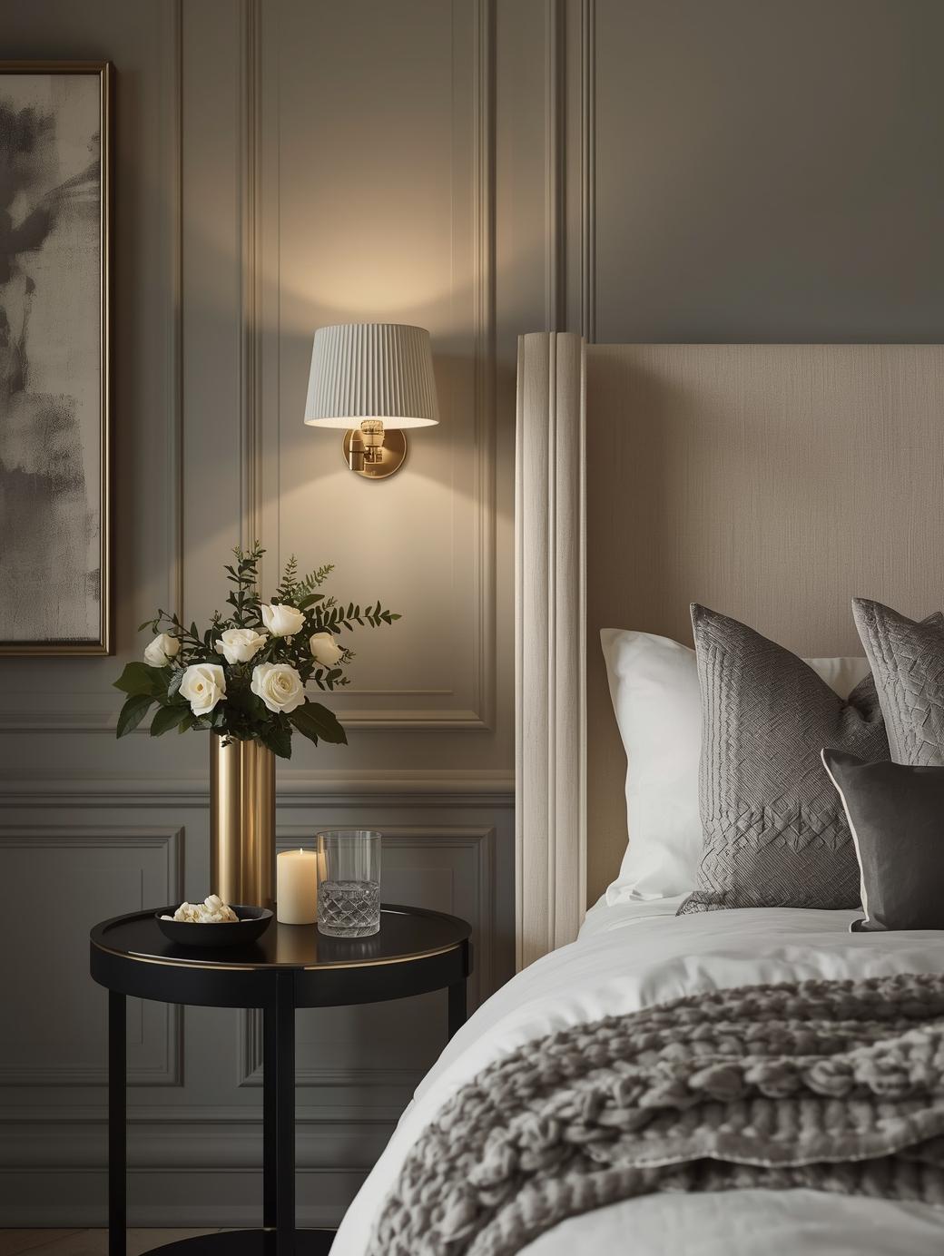 Avoid the harsh overhead lighting. These sconces plug into any outlet but look like they are built into the wall. It is perfect for a cozy, high end bedroom feel.