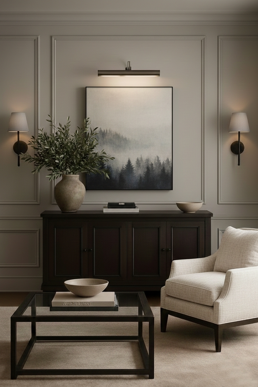 Empty walls often look unfinished. Use a single, oversized textured painting in neutral tones to create a high-end gallery feel. It adds depth and a sophisticated focal point without the need for multiple small decorations.