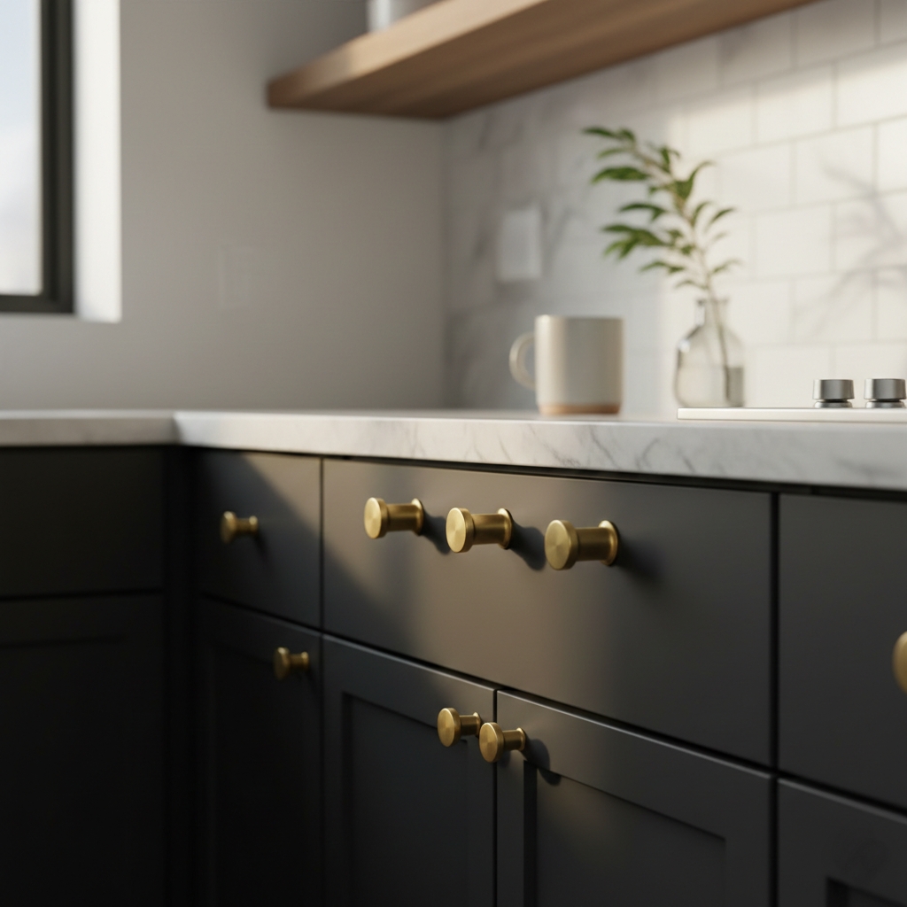 Is your rental kitchen stuck in the 90s? You can swap out boring handles for sleek brass or matte black ones. Just save the old ones so you can swap them back when you move out.