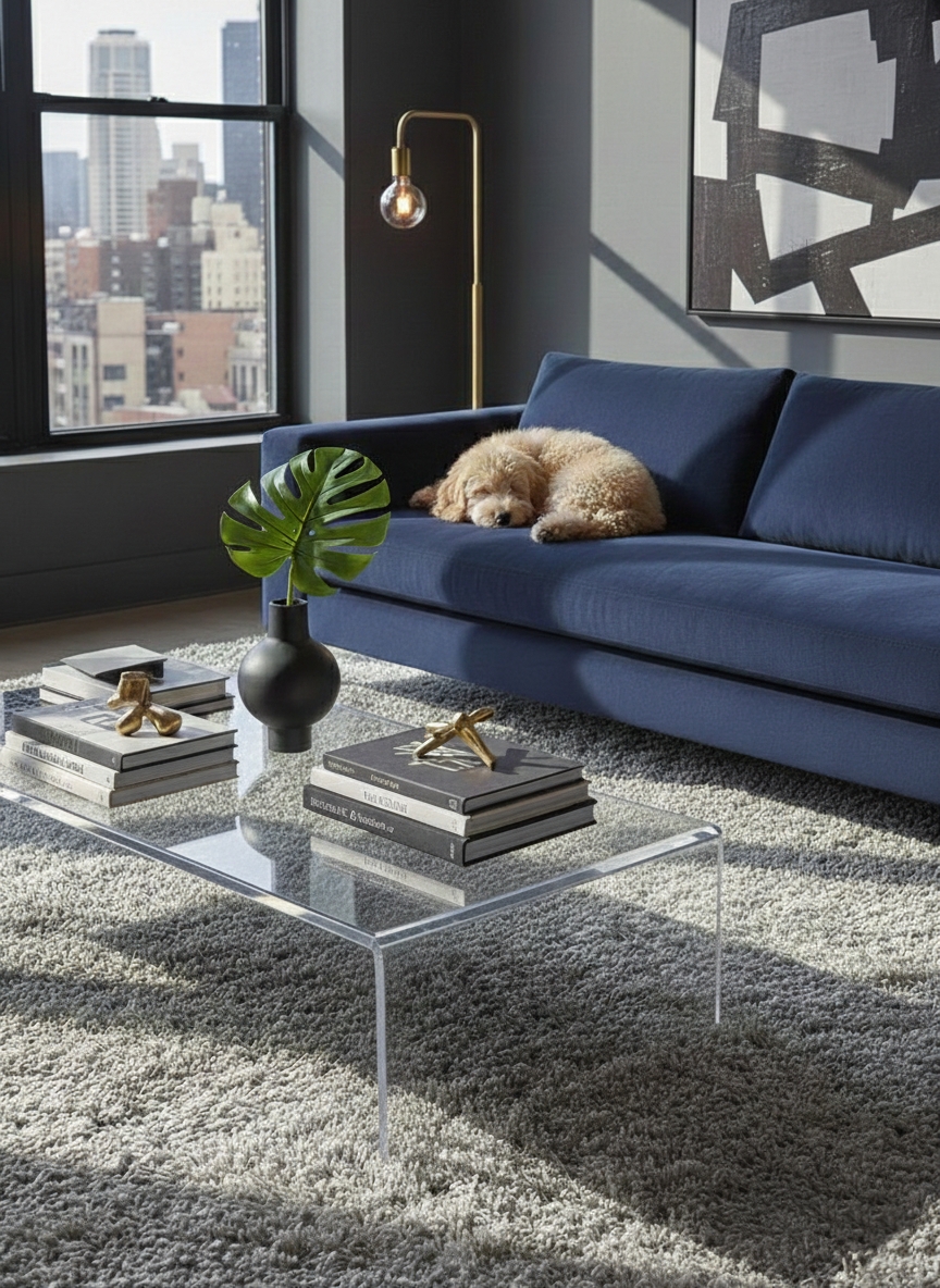 Visual clutter is the enemy of small spaces. An acrylic table serves its purpose while remaining invisible to the eye. This makes your living room feel airy and bright.